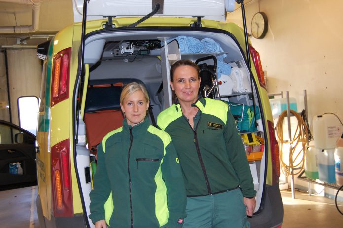Ambulanssjuksköterskorna Ida Hertzman och Malin Arvidsson i Nybro jobbar i 24-timmarspass.