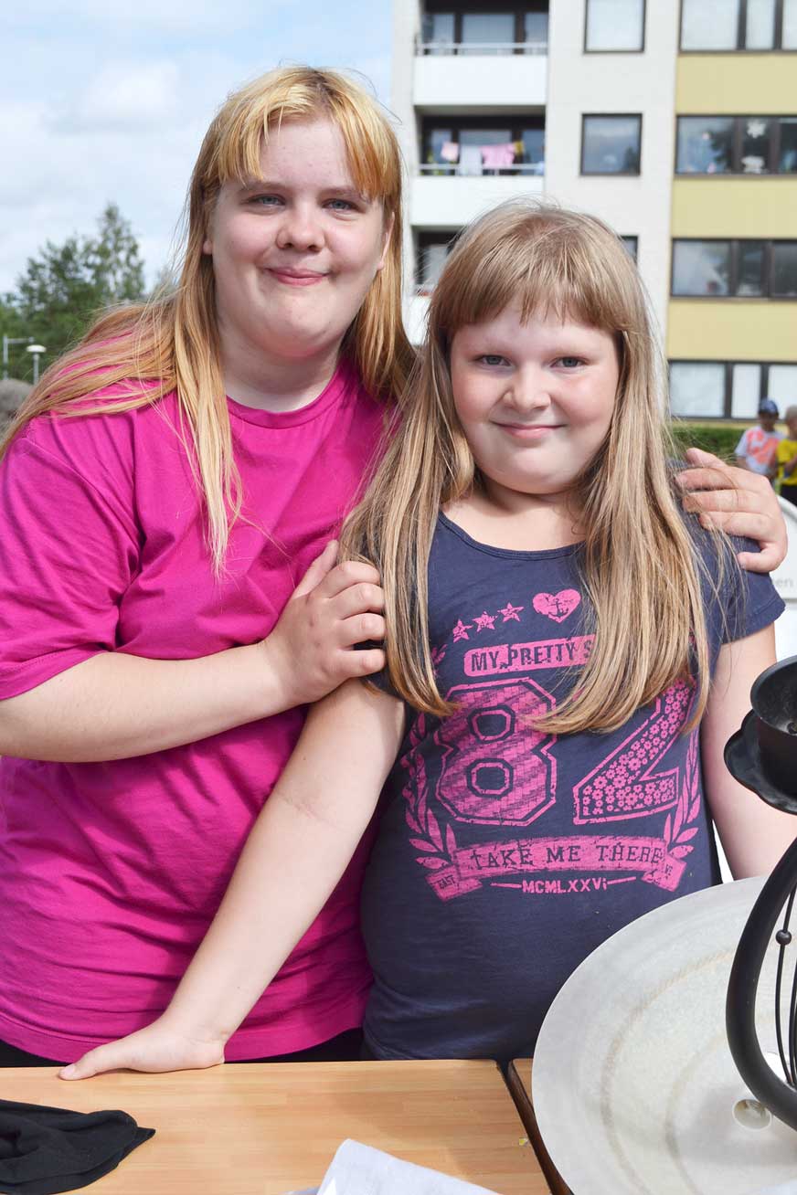 9-åriga Emma Åberg hjälpte kompisen Britney Jensen med försäljningen på loppisen.