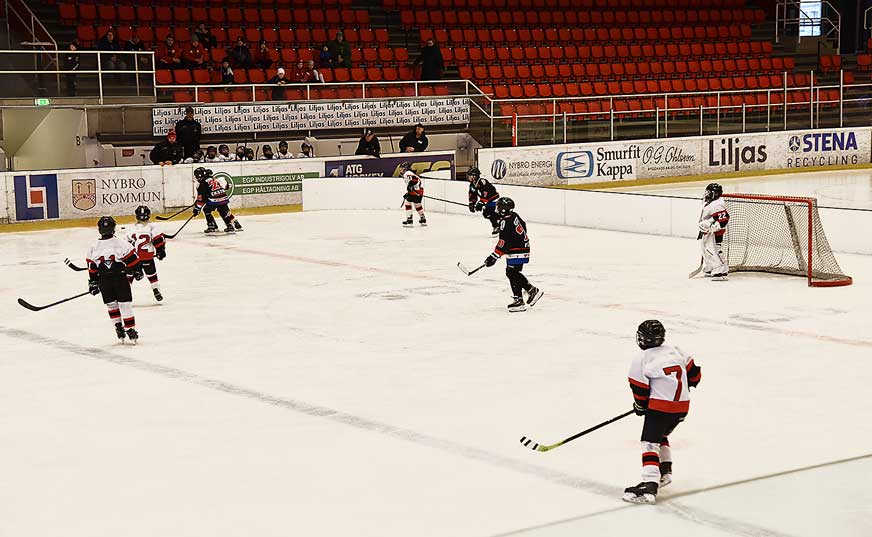 – Matcherna spelas på två tredjedelar av rinken i 1 x 21 minuter med avblåsning var 90:e sekund för byte. Alla möter alla och resultaten räknas inte, men det blir mycket matchträning och alla får spela lika mycket, vilket är ett av huvudsyftena, berättar Thomas Hallbing som är ledare för laget tillsammans med Robert Vågenäs och Magnus Forsberg. Tillsammans med föräldrar och anhöriga till killarna har de planerat för cupen och all kringförsäljning med lotteri, fikaförsäljning, arbete i speakerbåset, m.m.