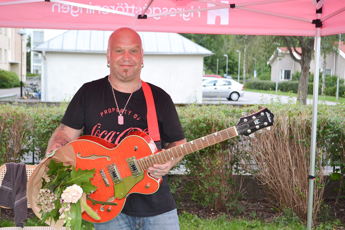Under invigningskvällen bjöds det på tårta och trubaduren Jimmy Larsson underhöll med sång och gitarrspel både i lokalen och ute på gården.