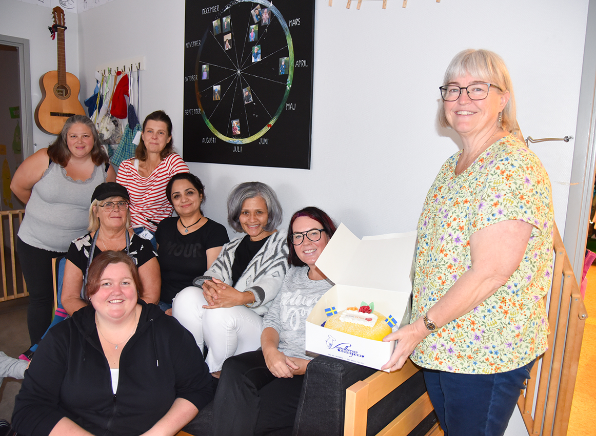 –Tårtan delar vi under fikastunden i eftermiddag, hälsar personalen tacksamt.